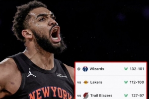 体育资讯2月4日讯 NBA常规赛,尼克斯132-101大胜奇才,豪取七连胜。